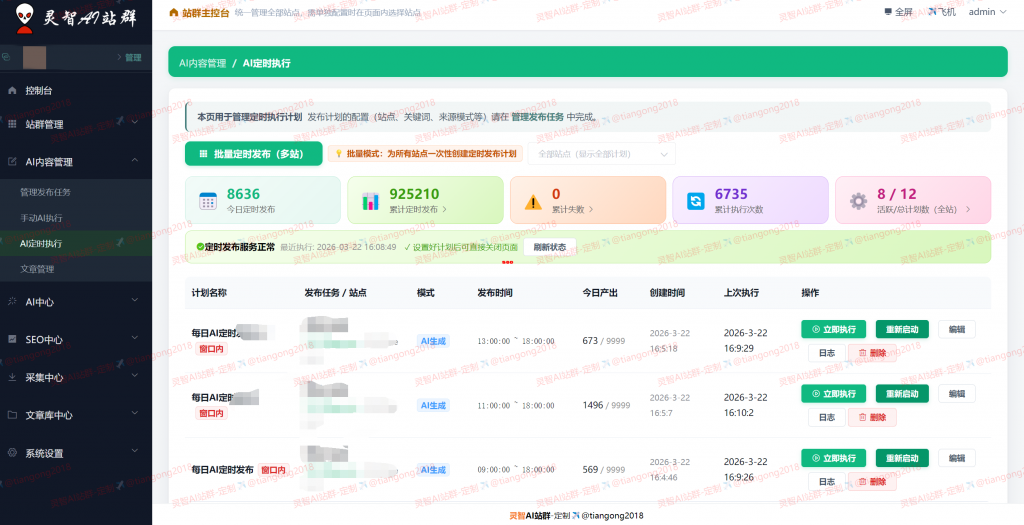 灵智 AI 站群:(部分功能介绍、核心技术不在这里说明,防止别人抄袭)